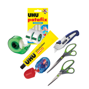 Perfektioniere deine Bastelprojekte mit unserem hochwertigen Sortiment an Schneide- und Klebematerialien. Wir bieten eine breite Palette von Bastelscheren und Cuttern für präzise Schnitte (auch spezielle Produkte für Linkshänder) sowie eine Vielzahl von Klebstoffen und Klebepistolen für dauerhaften Halt.